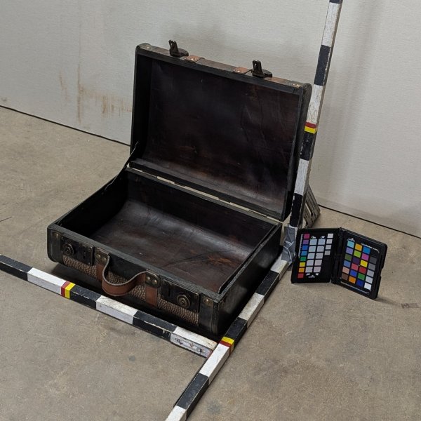 Hard sided wooden and leather valise. Modern replica. One has a shop made handle.