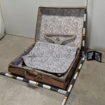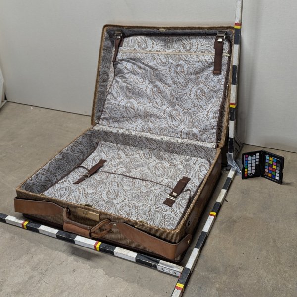 Functionality: Opens with center slide combination lock, and push in locks that are hidden under the leather straps. Opens to 180 deg.
