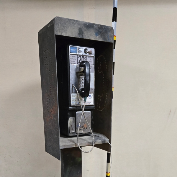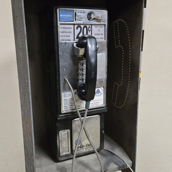 Metal base, wood box around phone
