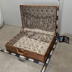Functionality: Opens with center slide combination lock, and push in locks that are hidden under the leather straps. Stays open at 90 deg.