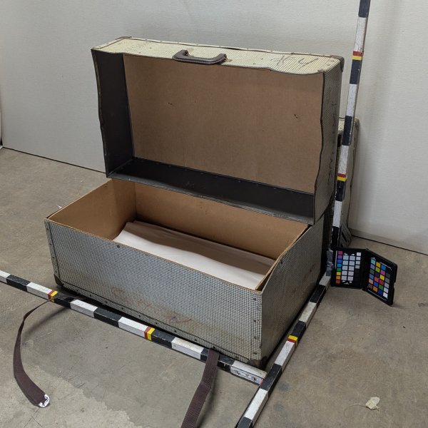 Functionality: Two pieces that separate completely, held closed by straps with buckles.