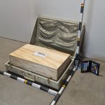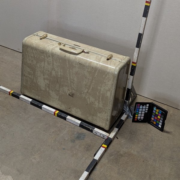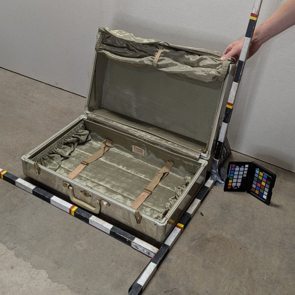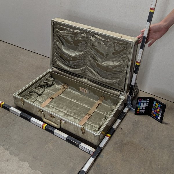 Hard sided suitcase. Samsonite brand. Lock is separate from the label. Matches Suitcase 46 and Suitcase 47, just smaller.