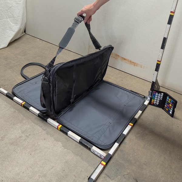 Functionality: Zips open and closed. Has two compartments on either side of a central divider.