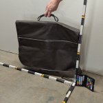 Functionality: Opens with a snap panel at the bottom. Has 3 original hangers. 38" when unfolded