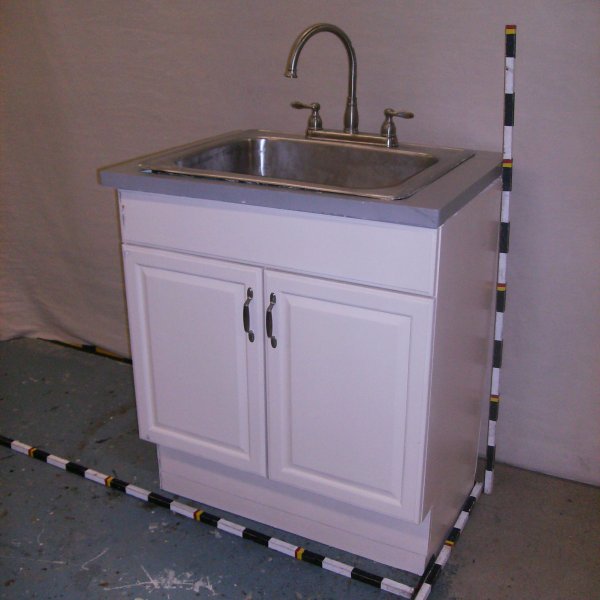 Store-bought sink cabinet. Fits both Sink 6 and Sink 8. Left side has been extended to 23.5 depth to fid the countertop for Sink 8.